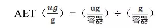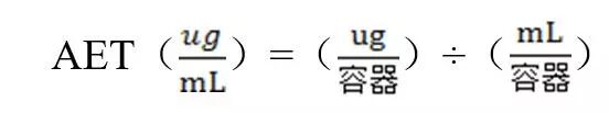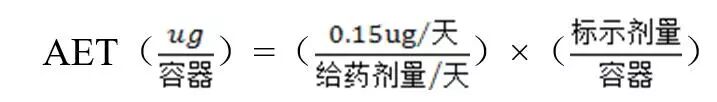 AET估值:可由SCT估算;先将SCT(μg/日)转换为产品单位剂量中的量,例如,μg/罐、μg/剂、μg/粒;再根据产品中各组件的质量和数量将这个值转换为每克组件中的量,例如,μg/g,即产品中的量与组件质量的比值;此结果就是AET估值。分析方法的灵敏度(定量限 LOQ)要求AET估值可被定量测定。