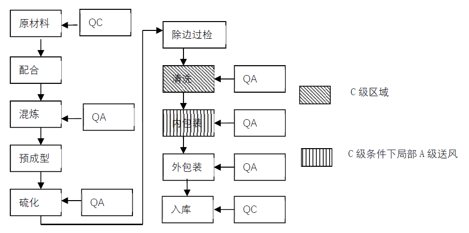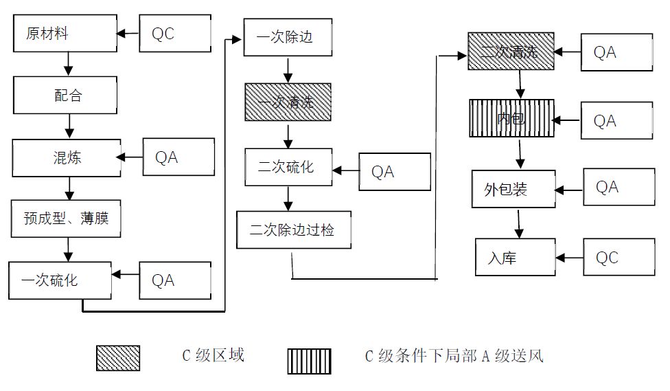 7)包装:在C+A洁净区域,用双层塑料洁净袋包装(免清洗橡胶塞应使用无菌袋),然后移到外包装间纸箱封装。