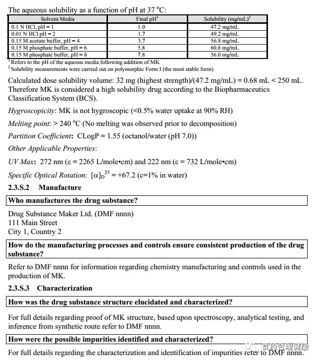 FDA手把手教你ANDA中Module 2.3.S怎么写